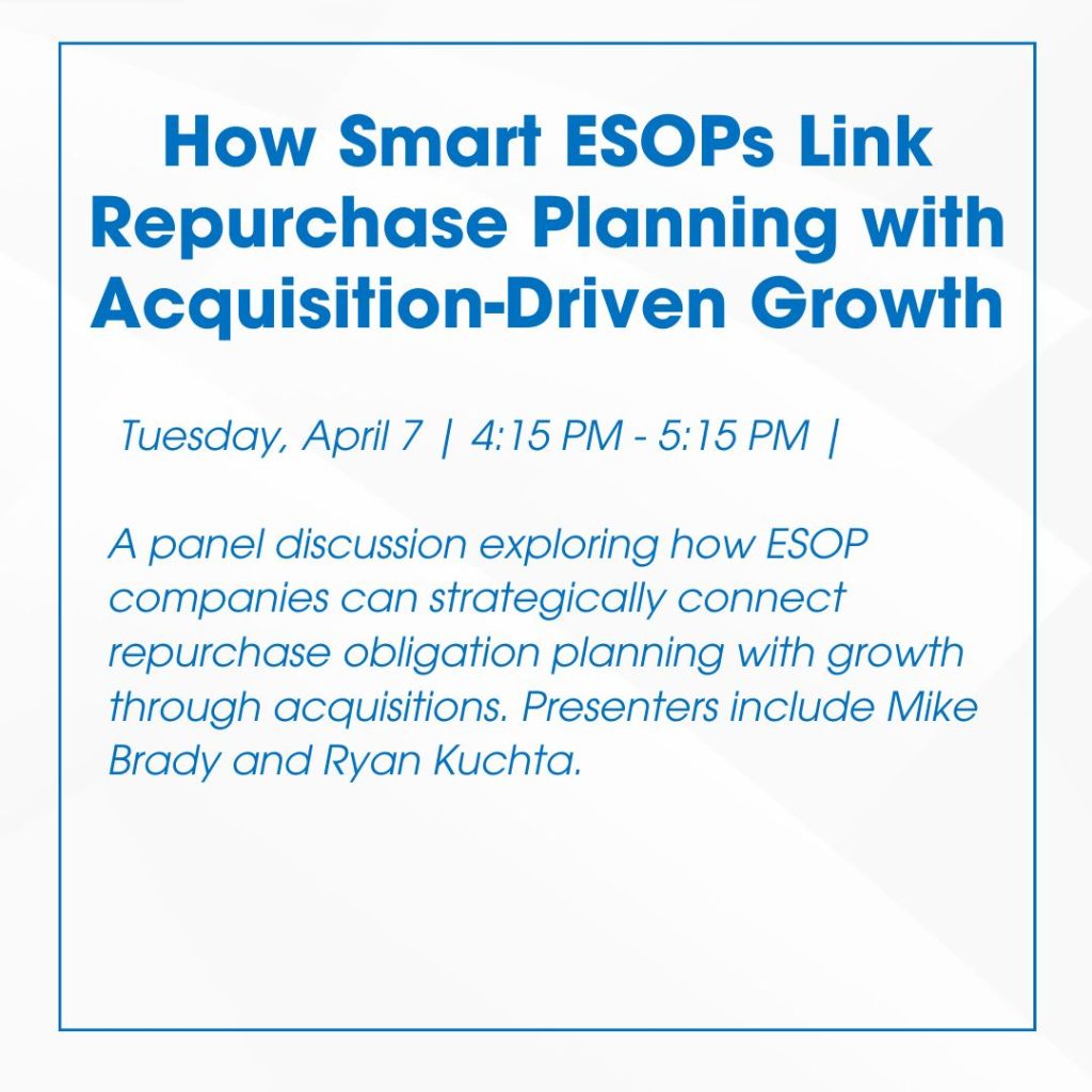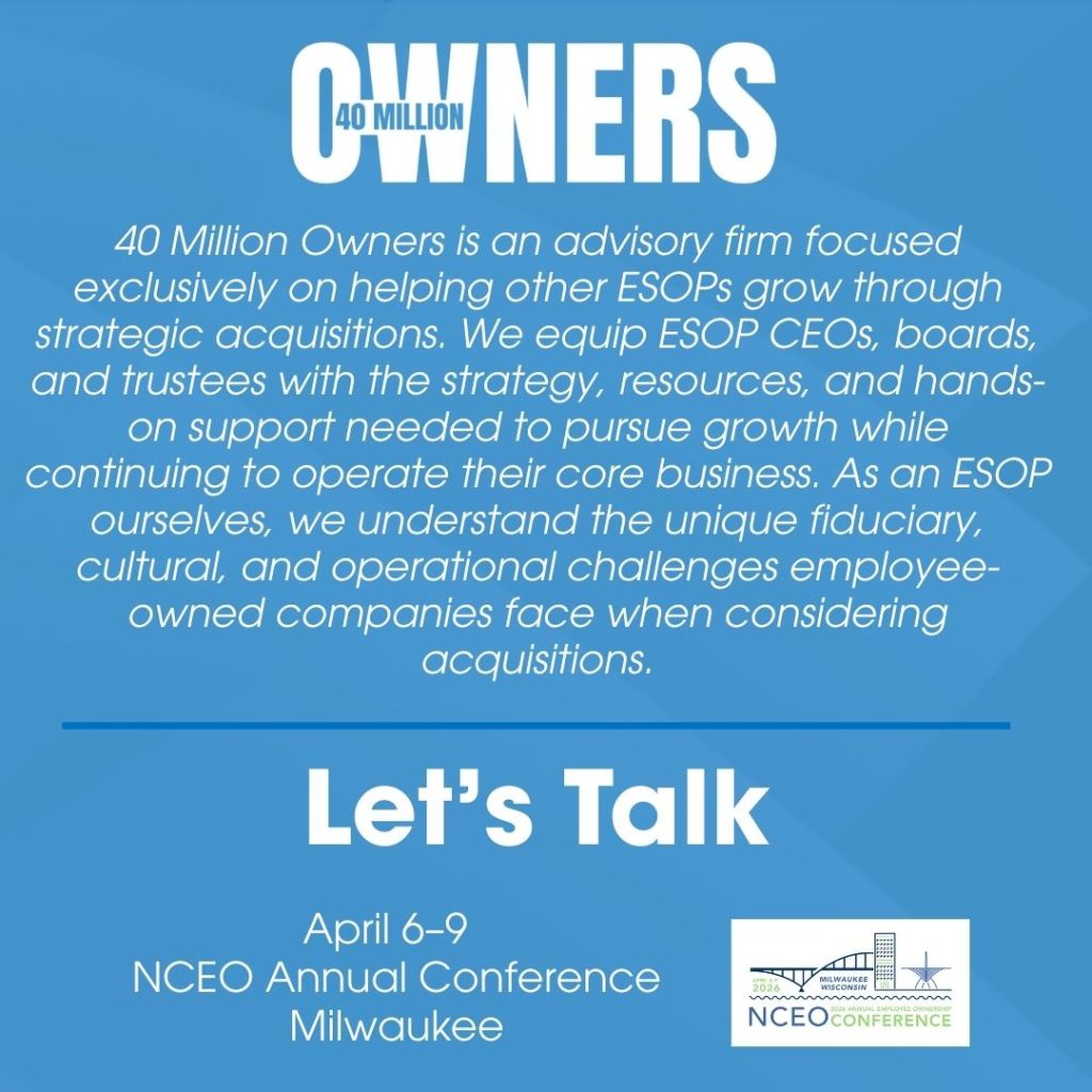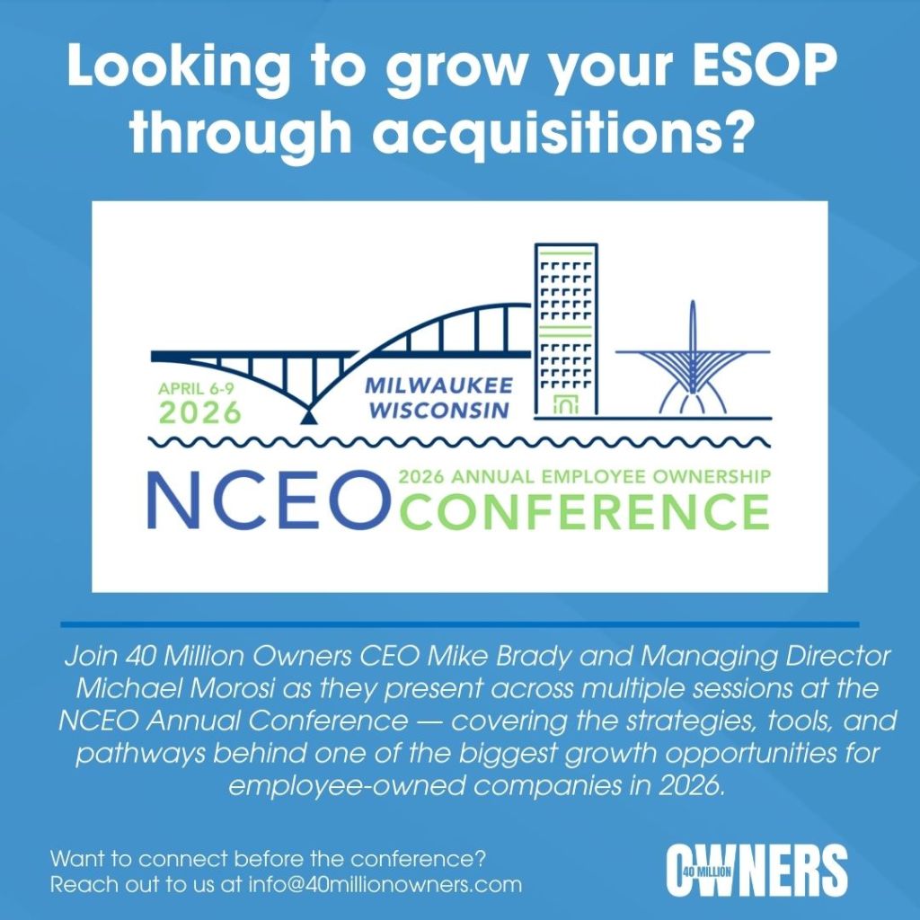 Now the market is creating a new kind of opportunity. Demographic transition is accelerating ownership transfers across industries. Capital is consolidating. Competitive pressure is rising. And in the middle of all of it, one of the most powerful tools available to employee-owned companies is ready to be used at full force: acquisition-driven growth.